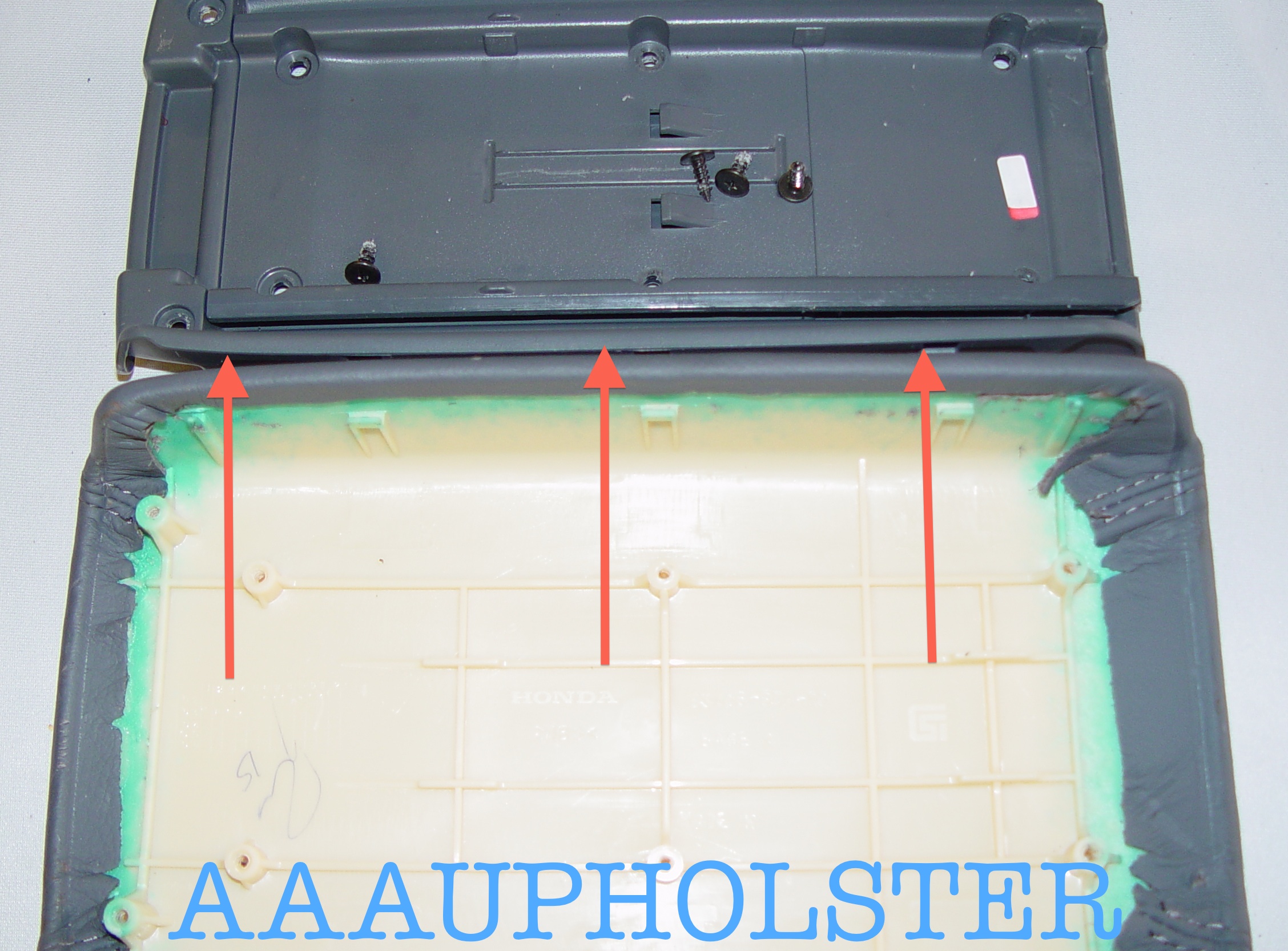 4.NOW USE THE GLUE ON THE EDGE OF THE LID TO KEEP NEW UPHOLSTERY PART FIRM TO THE LID & INSTALL ALL PARTS TOGETHER THE OPPOSITE WAY THEY WERE REMOVED.IT TOOK US 10 MIN TO INSTALL NEW COVER AND ARMREST LOOKS BRAND NEW OVER AGAIN